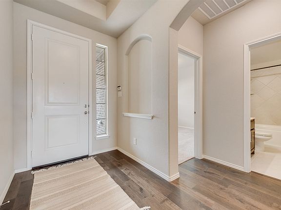 This beautifully 3 bedroom 2 bath 1630 sq. ft. has been well cared for and maintained home. Open floor plan and split bedroom offers plenty of space for family and friends. Kitchen boasts several upgrades including high end cabinetry. top of the line Samsung range, granite counters & and a pantry for extra storage. Kitchen nook has a built in window seat. Hardwoods throughout with carpet in bedrooms. Primary bedroom offers 2 closets, separate garden tub & shower and dual sinks. Shower also shines with its custom tile work. The backyard is massive and there is plenty of room to do whatever you want. Yard maintenance included with monthly lease. Extra pad laid for grilling. Front and back yard has sprinkler system. Enjoy the community pool, playground and walking path just steps away. Come and join this quiet community close to schools and easy access to the Chisholm Trail Parkway. Refrigerator, Washer & Dryer included. 2025-06-25
