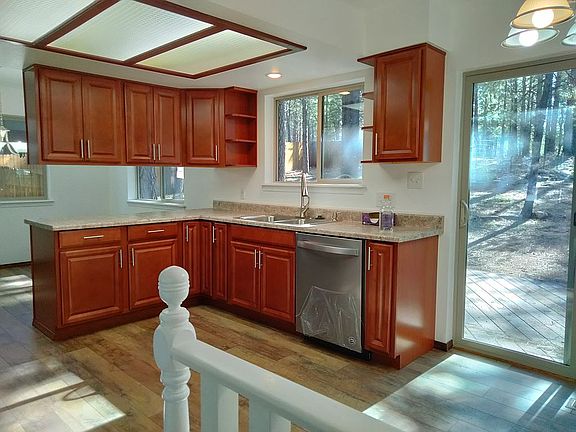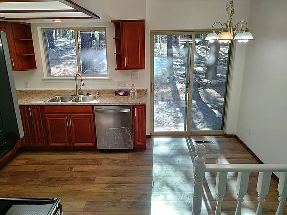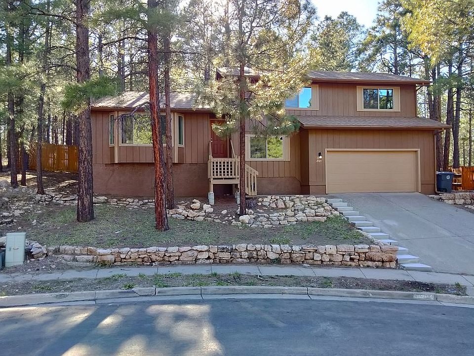 Elegant 4 bedroom home bordering undeveloped property and National Forest Service land with private entrance. This home has been completely remodeled and has had the same owner since new. In front are new concrete and wooden stairs leading to the front door. Behind the house is a large fenced yard with a separate fenced area for pets. There are many rock planters ready for gardening. The oversize 2 car garage is attached to a workshop with an exterior door to the pet area. The inside of the home is paved with new hard wood flooring. There's a recreation room and half bath with stairs leading to a kitchen and breakfast nook. This kitchen has brand new maple cabinets and stainless steel appliances. Adjacent to the kitchen is a dining room with an archway leading to a large, open living room with bay windows and vaulted ceiling. On the upper level are 4 bedrooms with new carpeting and 2 full bathrooms with new vanities, tops, linoleum, plumbing and light fixtures. This home has been repainted inside and out. Also new are the asphalt shingled roof, garage door with opener, dual pane windows, ceiling fans, and light fixtures. For more information or to schedule a showing, call Rob at 928-853-2425 or Justin at 928-600-2691. Thank you!