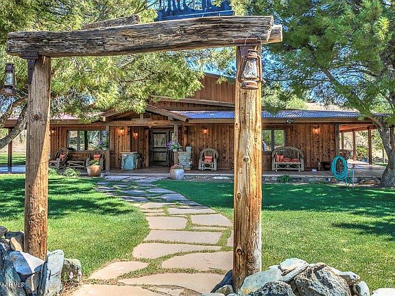Rustic elegance! A rare country gentleman's lodge retreat, 35+ acres, just minutes from Prescott and a good hour's drive from Phoenix. This elegant unparalleled country estate with board and batten siding on the main residence and garage, includes a 6500 sq ft RV barn. Wood burning fireplaces, vaulted ceilings with wood rafters throughout with custom metal brackets. Horse aficionados will love this property that is waiting for barn and arenas. This property is well suited for an events facility with an abundance of natural charm.