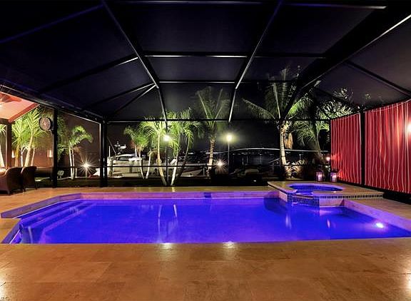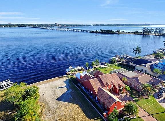 RIVER FRONT Mediterranean Style home designed by Bud Lawrence. Completely updated with the best money can buy. No expense was spared! This newly renovated 4/4/3 with den is located minutes from the Gulf, Sanible and Ft. Myers beaches. This unique residence's exterior is adorned with a custom precious wood/glass front doors, three new Cloplay garage doors (180 mph rated), hand made barrel roof tile, copper trimmed fascia, decorative precast stone columns and impact resistant glass on all windows and doors, Italian travertine walkways, front wall and pool deck, newly refinished Pebbletec pool and spa, propane tank, 3 new HVAC systems 20.5 seer, upgraded 60k lb boat lift, summer kitchen equipped with all stainless steel Lynx appliances. Inside is just as stunning with high ceilings, wood burning fire place, precast crown moldings and up stairs railings, elaborate travertine floors, stone columns, solid wood built in cabinets, granite countertops, Kitchen Aid Pro Line appliances, whole house water filtration with UV light, Encore epoxy flooring in the garage and much more. This home has that wow factor missing from most. Schedule your viewing before someone else ceases this gem.