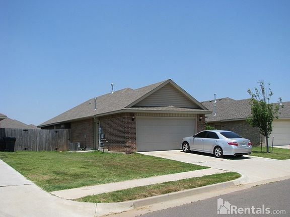 This nice brick 3/2/2 is on a quiet street that is only minutes to Tinker AFB. This home has neutral colors, vaulted ceilings, a medium sized back yard and a large walk in master bedroom closet. It includes a nice open living room with an impressive fireplace. It has an open kitchen with ceramic tile and breakfast bar. Side by side refrigerator with icemaker; built in microwave. Good location south of I-240 near Sunnylane. Pets (under 30 lbs) allowed with additional deposit. Homeowner's association keeps this neighborhood nice; landlord pays those dues. Nice community park/playground a couple of blocks away and a newer child day care center immediately located on the edge of this housing development. This is a nice one!