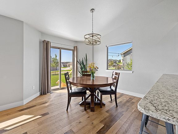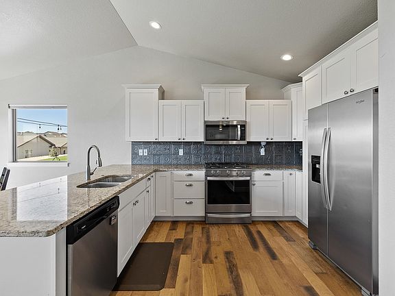 Welcome to this one-owner home in the highly coveted Highpointe Ranch subdivision, just minutes from The Golf Club at Red Rock. This ranch-style home boasts 5 bedrooms, 3 full bathrooms, and a spacious 3-car garage. Step inside to discover an open-concept layout connecting the kitchen, dining area, and living room. The home features top-of-the-line appliances, custom cabinets, and granite countertops. Engineered hardwood floors grace the main living areas, complemented by vaulted ceilings and recessed lighting that enhance the natural light throughout. The main floor features the primary suite complete with a walk-in closet, a spacious bathroom featuring a double vanity, custom tile walk-in shower, and a large tub for relaxation. Two additional generously-sized bedrooms and another full bathroom, and laundry closet offer comfort and convenience on the main level.