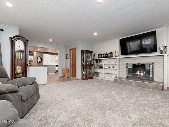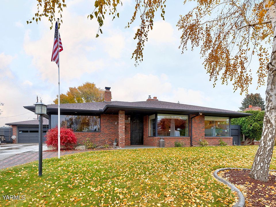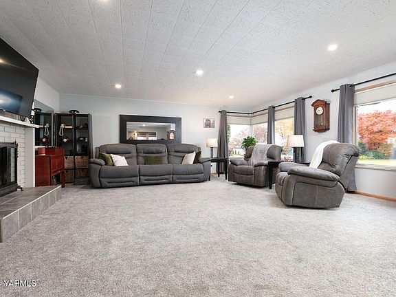 Welcome to this beautifully updated West Yakima home! Perched in the Uplands Neighborhood, the brick exterior and landscaping provide great curb appeal! With 2 bedrooms on the main floor, a finished basement with its own entrance, and a separate studio off the garage, this property provides plenty of space and versatility. As you enter, you're greeted by a spacious living room featuring a gas fireplace, plush carpet, and large windows that provide natural light and lovely views. The newly updated kitchen is highlighted by a cozy wood-burning fireplace! The kitchen also features stainless steel appliances, new cabinetry and countertops, and large windows near the dining area that fill the room with light. The primary bedroom offers plenty of closet space and an updated en-suite bathroom. The finished basement has interior stairs to the main level, as well as its own entrance from the backyard, offering added privacy and easy access to outdoor living spaces. A separate studio located off the detached garage provides additional versatility and includes it's own bathroom. Out back, enjoy the above-ground pool or unwind in the hot tub. Other updates include added insulation in the attic, updated bathrooms, and newer carpet/flooring throughout. This home is move-in ready and is waiting for you to make it your own! Square footage per county records. Buyer to verify to their satisfaction.