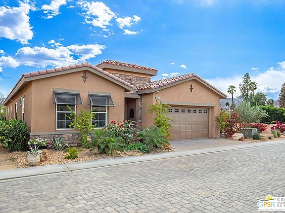 A premier quiet end/corner location inside the highly desirable Villa Portofino 55 plus gated community. Top notch improvements immaculately maintained this large 2,341 sq ft residence has 3 bedrooms plus a den and 3 baths. Gracious flowing open floor plan with pleasing natural light and lush gardens. It enjoys fantastic western mountains and sunset views because of its premium location next to an open community area. You can enjoy views and privacy that are unique within this vibrant community. The spacious home has 10ft ceilings throughout, and a spectacular great room that combines the living room, dining area, and eat-in kitchen into one. The spacious kitchen features shaker-style cabinets with stainless steel appliances, French door refrigerator, gas cooktop and a large prep island with oversized sink, and quartz countertops with breakfast counter and walk in pantry. The great room also opens to a covered south patio via double sliding doors. Located off the main entry is the spacious den or possible fourth flex bedroom, with sliding doors, private patio, and unobstructed western views. The Primary bedroom has south exposure and access to the covered patio. A light filled space, this beautiful room also has a spa-like ensuite bath with dual vanities, luxurious soak tub and walk-in closet. The 2 additional bedrooms are accessed from the entry hall and enjoy a spacious hall bath with shower. Other amenities include custom window treatments with both filtered and blackout shades, full laundry room, double car-attached garage, and cost-saving and eco-friendly solar system too! HOA dues include clubhouse membership, which gives you access to the heated community pool/spa, recreation/fitness facilities, and Bistro restaurant.
