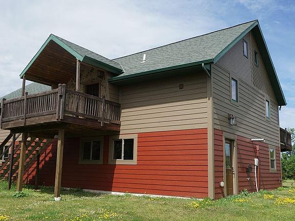 Enjoy your morning beverage on the dock or deck of this 2 + story Lax Lake home with frontage on Lax Lake. Features include 4 bedrooms, 2 bathrooms, large living room, 2 car tuck-under garage, in-floor heat on the first level, new patio doors to decks for lake views from living room, and bedrooms and easy access to the lake. There's a dock, septic and well, 5 acres and 50’ of frontage on Lax Lake.