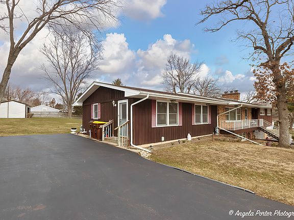 You will appreciate the quality and care of this original owner brick and cedar hillside ranch with a complete in-law suite including it's own driveway and entrance. This well cared for home has over 3800 square feet of living space with 5 bedrooms and 3.5 baths. The primary residence has a large Living Room with gas log fireplace and expansive picture window offering views of the Fox River across the street. The efficient Kitchen with Pantry is framed by both a Formal Dining Room and Casual Eating Area - ideal for entertaining. All stainless steel appliances have been replaced in 2022 along with counters and custom island for seating. Master Bedroom has hardwood flooring and full bath. Two more Bedrooms, and a hall bath offers easy-access when coming in from the pool. The in-law Suite boasts it's own full Kitchen with Eating Area, Living Room, Bedroom and spacious Bathroom with whirlpool tub and separate shower. Main level Laundry. English Basement includes a large Recreation Room with wood burning Fireplace, 5th Bedroom, 3rd Full Bath, a huge Storage Area, 2nd Laundry hookup, and door to the 2.5 car Garage. Relax on the recently redone Deck and enjoy the landscaped and lovingly maintained 1/2 acre fenced yard. The heated above-ground Pool and Deck are 2018 new (2020 pool filter & pump). Electrical hookup for an RV. Shed is the equivalent of a 1 car garage and has ample space for equipment, tools and more. Peaceful neighborhood lets you vacation at home. A/C new in 2020.
