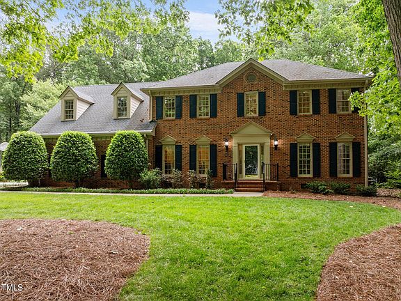 This impeccably maintained, one-owner custom home is a rare find blending timeless design, thoughtful updates, and everyday comfort all just minutes from shopping, dining, and RDU Airport. Set on a large, private wooded lot with a pristine lawn and mature hardwoods, the mostly brick exterior and side-entry garage create a stately first impression. Inside you'll find an updated kitchen and a serene, modernized primary bath. A full main level apartment at the rear of the home - with its own bedroom, living room, beautifully updated kitchen, and full bathroom with walk-in shower offers unmatched privacy and flexibility. HOA information can be found at: https://www.woodvalleyhoa.org/