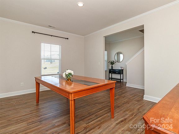 Check out this GREAT VALUE! Expansive living meets effortless style. This charming home boasts spacious rooms throughout, perfect for both entertaining and everyday comfort. The open floor plan flows seamlessly, showcasing the elegant vinyl plank flooring that graces the main level. The heart of the home—the white kitchen—features a generous island, gleaming granite countertops, and stainless steel appliances, including a refrigerator, ideal for culinary creations. Imagine hosting gatherings in the dining room, great room and breakfast area, all designed to accommodate large furniture and lively conversations. Upstairs, five generously-sized bedrooms await, including a primary suite with cathedral ceiling and luxurious tile bath. Enjoy serene privacy in the level backyard, enclosed by a privacy fence and backing to a common area.