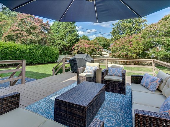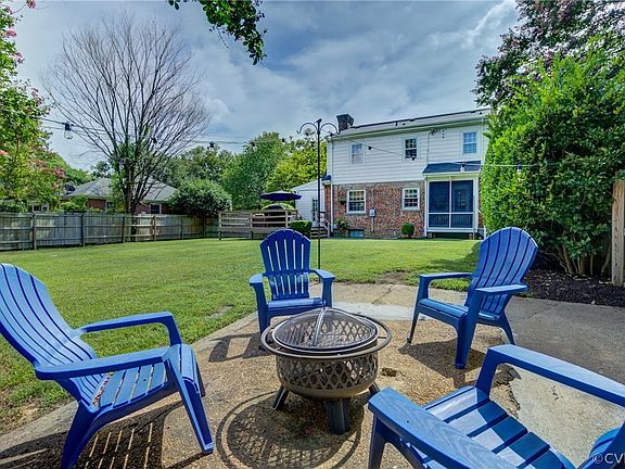 Wonderful Augusta Ave location in the heart of Sauer's Garden! This stately Cape sits high on an incredible 75 ft wide lot w/huge privacy fenced rear yard, plenty of space to add on, or create your dream backyard- room for pool, detached garage from the easy rear alley access, you name it! This Richmond classic boasts the 1930's charm we love with all hardwood floors throughout, original glass door knobs, arches, glass cabinetry in the classic white & granite countered Kitchen. The living room is centered around the original brick fireplace, hardwood floors, & a turned staircase, circular flow to dining room w/ chair rail & HWD FLS. Sunny & bright Florida Rm/Office w/plantation shutters, painted exposed brick & great access to backyard/deck. Upstairs is newly painted w/ a full 8ft dormer across the back of the home, primary suite & 2 additional bedrooms! Finished basement is ready to Host or Hangout complete w/ wet bar & half-bath- perfect for ladies' night, book club, days of football screening, or game room w/ space to workout! The unfinished basement area has plenty of storage, large laundry area, and workbench. New HVAC in 2021, New Hardiplank on FL Rm '21 New rear roof in '17.