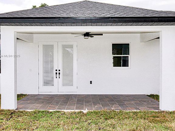 This stunning 2025 new construction home features 3 bedrooms, 3 bathrooms, and premium upgrades throughout. Key highlights include an open-concept design, Wi-Fi-enabled ceiling fan in the living area for smart home convenience. Sleek bathroom mirrors with built-in lighting and defoggers, and elegant tile work including bathrooms and niches. The kitchen boasts granite countertops, stylish backsplash, and brand-new Whirlpool appliances. Outdoors, enjoy a covered lanai with a ceiling fan, spacious backyard, and 4-zone irrigation system for effortless lawn care. Additional features include an oversized 2-car garage with attic access and French doors with built-in blinds.This home combines thoughtful upgrades with a modern aesthetic, perfect for Florida living—schedule your showing today!