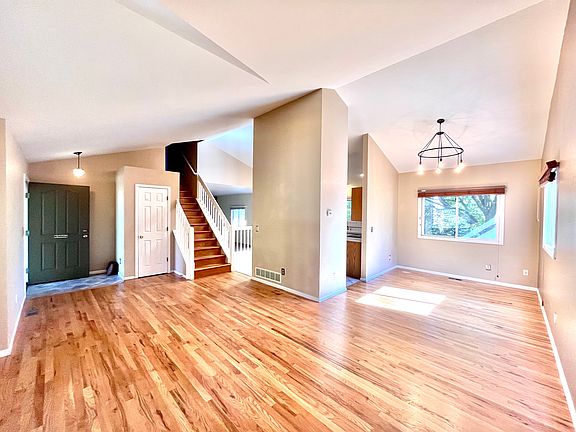 Fully fenced yardFormal dining roomVaulted ceilingsEat-in kitchenOpen floor planQuiet cul-de-sacHardwood floors