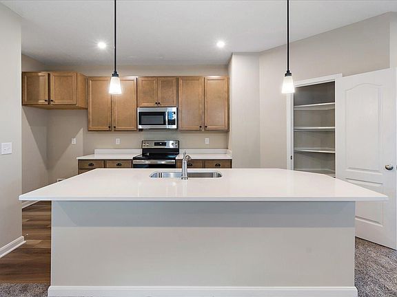 - Features: Kitchen Island, Solid Surface Ctr, Vinyl Floor, Wood Cabinets