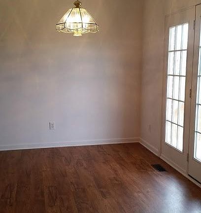 Home has brand new wood floors, fresh paint throughout, new covered deck on back. Large yard with storage shed. One car garage. High ceilings and large master suite with trey ceiling. One year lease. One small dog considered on a case-by-case basis. Requirements include: 620+ credit score, provable income of $3,825, good rental history and clean background check.