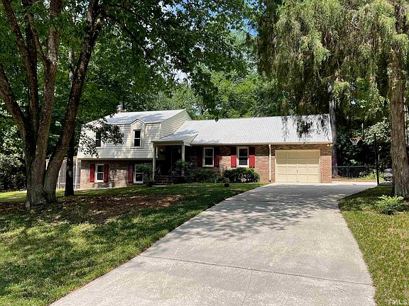 Space, charm & flexibility in fantastic Valley Brook neighborhood. No HOA. 3 full baths. Freshly painted inside and out. Hardwood floors on main level + 1 BR. New carpet upstairs. New LVP flooring in downstairs family room. New gas range & refrigerator. Roof-11 yo. HVAC replaced in 2018. Tankless WH installed 2014. Hardiplank siding. Vinyl replacement windows. Close to Jordan HS. Convenient to Duke, UNC, RTP, shopping, DBAP. Wooded .47 acre lot w/ fenced backyard. Oversized 1 car garage.