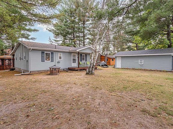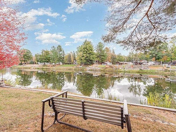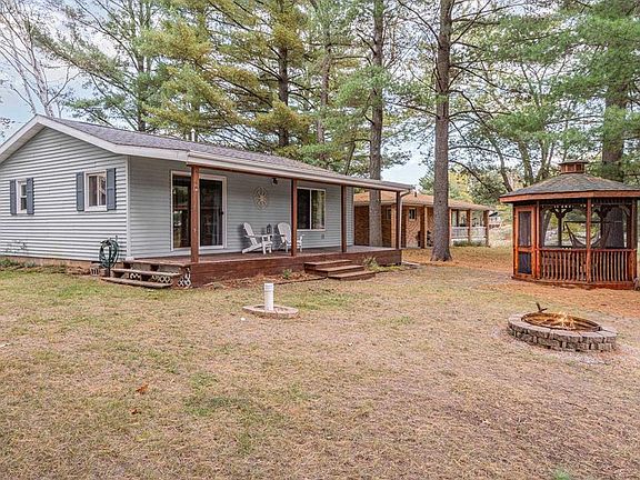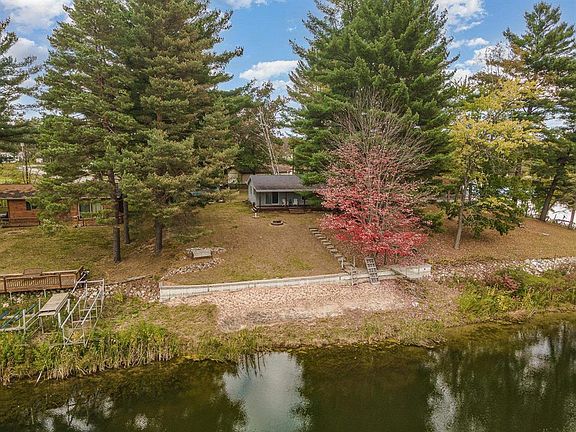 The one you've been waiting for! 76' of waterfront on all sports Secord Lake. Situated on a large lot taking in a bend of the lake the view is simply gorgeous. Sit on the covered porch and watch the boats go by when the water is fully restored (projected for next Fall 2024). Better yet enjoy swimming at the sandy bottom waterfront! With a wood seawall in good condition and a suspended dock you can easily jump on your boat for a day of fun lake activities. Power at the water's edge and a lake pump to water the grass & flowers. Enjoy an evening bonfire in the fire pit or cozy up with a book in the gazebo facing the lake. The year round home or cottage is on a paved road on a quiet section with a boat launch at the end for convenience. The exterior of the house has vinyl siding, mostly vinyl windows, a shingled roof in good shape with gutters and gutter guards, and newer 5" well. There is a 1.5 car detached garage that is also vinyl sided and has electric. Perfect secure storage for all the water toys! A covered front porch with recessed lighting leads you to the entrance. The living room is spacious and offers big windows to take in the view! The kitchen and entrance/laundry room have vinyl plank floors. Kitchen is fully equipped and even has a dishwasher! Slider opens up to the covered waterside porch running the full length of the house. 2 bedrooms (bedroom 1 has newer flooring) each with a closet and an updated bath with a tiled floor and a tiled shower. Such a bonus to have a washer & dryer at the lake house too. Newer forced air propane furnace that is A/C ready.