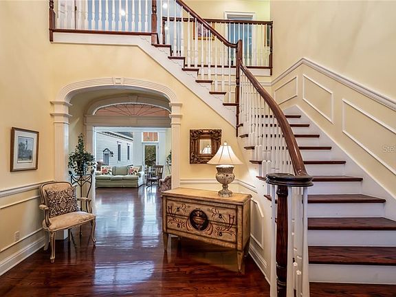 COLONIAL MASTERPIECE ON THE MANATEE RIVER!!! Stunning, panoramic water views are the focal point of this privately situated, two story, custom-built home on 1.12 acres. The interior of the estate is true to form with architectural accoutrements including a grand entrance winding staircase in the foyer, dentil and multiple wall moldings, wood floor, a back staircase and countless symmetrically placed windows allowing natural sunlight to flow from room to room. A wood burning fireplace with detailed and carved wood compliments the formal living room. Special dining occasions can be enjoyed in the formal dining room. The kitchen features washed cottage finish cabinets with a center island, gas cooktop with hood, trash compactor, Sub-zero refrigerator, a wine refrigerator, and two refrigerator drawers. The adjacent breakfast room has a butler's pantry. While the master bedroom is located on the first floor, the second floor has four bedrooms, bonus room, and a billiards room above the garage. Enjoy the view of the river from several well-placed sitting porches. A detached 846 sq. ft. guest house, located adjacent to the pool, is the perfect get away for guests. It has a cathedral ceiling, bedroom, full bath, Murphy bed, and kitchen. It also serves well as an in-law's quarters or for live-in caregivers.Waterfront adventures begin in your own backyard with 169' of direct frontage on the Manatee River, and a 300' dock and boat lift. Direct access to Tampa Bay, ICW and Gulf of Mexico.