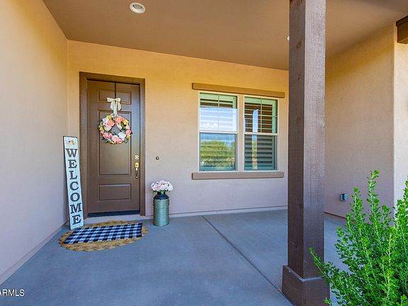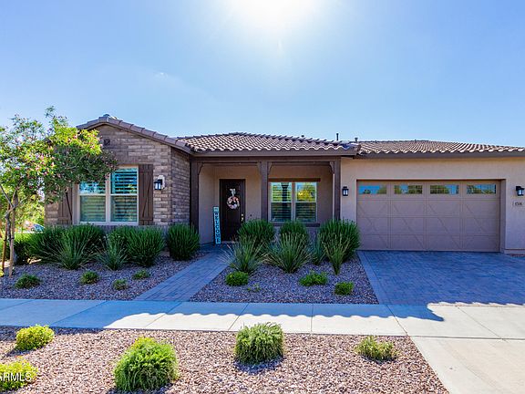 Designer touches in this fabulously designed 4 bed, 3.5 bath residence now for sale! Beautiful facade with stone veneer accents, desert front landscaping, and a 3 car garage! Lavish interior boasts formal dining and living areas with wood-like tile flooring, plantation shutters, and neutral paint throughout. Chef's kitchen is comprised of white cabinetry with crown molding, a walk-in pantry, granite countertops, tile backsplash, stainless steel appliances such as a wall oven, pendant lighting, and an island complete with a breakfast bar. Glamorous master bedroom features a spacious walk-in closet and a private bath with dual sinks, as well as separate tub and shower. Stunning backyard includes a covered patio, lush grassy area, and a sparkling blue pool perfect for the warm summer days