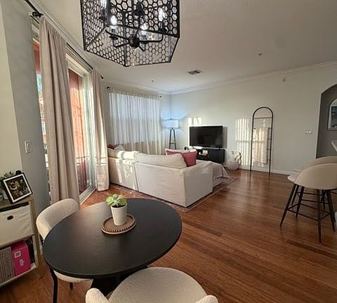 Spacious 1/1 in the gated resort style community of Villaggio. Centrally located, easy access to highways and close to shopping, dining and entertainment. Condo features a large open kitchen, bamboo and tile flooring throughout, interior laundry room with full size washer and dryer, walk-in bedroom closet, high ceilings, crown molding and lots of natural light. Community has many amenities including pool, hot tub, water play area, playground, BBQs, volleyball, basketball, pool and gym.