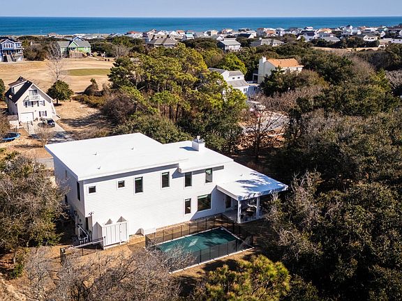 Don’t miss out on this modern take on the old Historic Outer Banks flat-top, built by Smith Contracting! Perched 30 feet above sea-level in the the Sea Scape community, this design perfectly combines nostalgic charm with modern simplicity and functionality. The layout features an open great room bathed in natural sunlight, a modern kitchen, an open loft, four spacious bedrooms, 3.5 baths, a walk-in pantry, and a large utility room. The great room, kitchen, ground-level primary bedroom, hallways, stair treads, and upstairs loft have low-maintenance white oak engineered hardwood. All bathrooms and the utility room have tile floors, and the upstairs bedrooms have carpet. LEVEL ONE - Easy one-level living. Open living and dining area with two levels of windows, a gas fireplace, and built-in open storage compartments with oak tops. A stylish kitchen overlooks the great room and is outfitted with custom cabinetry, quartz countertops, a central island with storage and seating, and four oak wall-mounted floating shelves. The stainless steel KitchenAid® appliances include a French door refrigerator with ice maker/filtered water dispenser, 5-burner gas range/oven, and dishwasher. A small hallway leads from the kitchen to the utility room and is separated by an oversized walk-in storage pantry. The utility room has a GE washer/dryer, open and closed storage compartments, bench seating, and garage access door. A hallway on the opposite side of the first floor leads to a half bath and entrance to the primary bedroom suite which features a large walk-in closet with built-in shelves. The en suite bathroom has tile floors, a dual sink vanity with two ceramic vessel sinks, and a custom tile walk-in shower with gold finishes throughout. Custom blinds from Full Tilt Blinds and Shutters have been installed throughout the home. Second level living room blinds are remote-control operated. LEVEL TWO - Black horizontal rails line the stair system leading to the second floor and frame the roomy loft area above. An oversized linen closet with ample storage completes this central space. There are three spacious bedrooms with generous closets on this floor. One has a private bathroom with a tub/shower combination and the other two bedrooms share a Jack and Jill bathroom with a white subway tiled walk-in shower with gold finishes and tile flooring throughout the bathroom. The single-car attached garage provides a Navien tankless water heater for hot water on demand! OUTDOOR AMENITIES: The exterior is LP Smartside lap siding and trim. (1) Front Covered Porch - tongue and groove ceiling with plenty of room for outdoor seating and decorative potted plants, (2) Rear Covered Patio - tongue and groove ceiling with space for an outdoor grill and seating that overlooks the fenced-in yard and private saltwater pool with removable mesh safety pool fence, (3) Outdoor Shower, and (4) Landscaped Yard - complete with irrigation system to water the grounds. (5) Underground invisible fence in front and back yards. The home is within walking distance of the Sea Scape Golf Links golf course, Ocean Boulevard Bistro & Martini, Art’s Place, and the Eckner Street beach access. The home design and amenities are ideal for year-round living, use as a second home, or an investment rental property. Three 2025 rental projections available in Associated Documents.