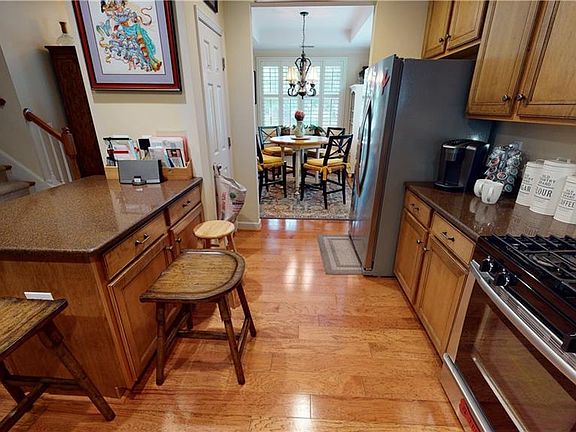 Beautiful open plan, quartz counters, upgraded cabinets, plantation shutters, Added 30K in beautiful outdoor area w/23.5 x 13 ft screened porch, 16x10 Trex deck, beautifuly landscapped area. Recently painted entire outside. Huge master w/french doors to sunroom. Built in desk in loft. Huge walk in attic. Gas range. Appliances new except for dishwasher, new windows 2nd level. HOA includes front, side and back yard maintenance, n'hood pool. Storage in garage and w/in attic. Check virtual tour movie reel