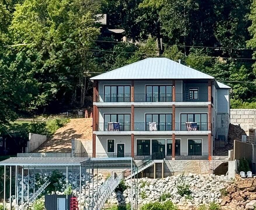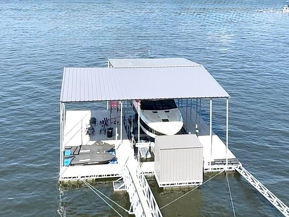 Middle floor offers two primary suites, each with large ensuite baths, a third bedroom, and a lakeside living area w/ stunning water views. Lower floor offers expansive living area, 2 bedrooms & wet bar. Enjoy the outdoors w/ lakeside decks on every level & outdoor shower! New boat dock includes 2 PWC slips, 40 ft boat slip + swim platform. You have a front row seat to the best July 4th fireworks show in the region! Paved roads and no HOA's. Located near all South Grand Lake Amenities!