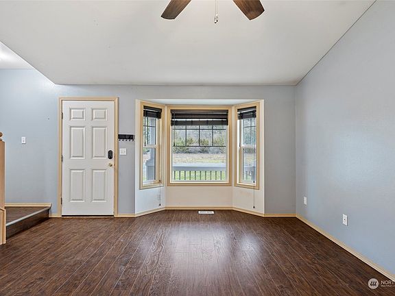 Well-kept 3 bed 2.5 bath home located near the North Cascades National Park entrance. This tiny Pacific Northwest town makes up for its size with plenty of character, natural beauty, and recreation. You’ll find easy-access community parks & hiking all surrounded by stunning mountain scenery. Situated on a large, fully fenced, full sun lot this home has vaulted ceilings, covered back patio, 2-car garage & more. All bedrooms on upper level are generously sized and get great natural light & air. Newer floors & paint. Primary bedroom with en-suite bathroom. Open kitchen & living room with sliders to back patio & yard are great for entertaining & relaxing. Additional parking for cars, boats, or RV with hookups near the yard with secure gate.