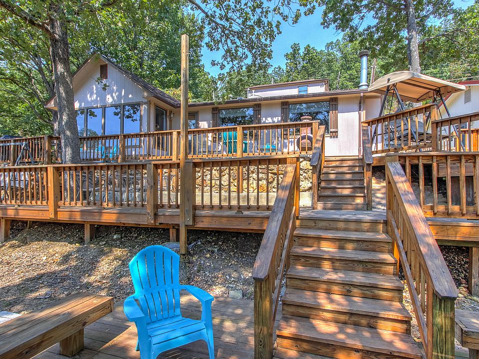 Duck Creek Waterfront home, with calm water and good views, it's a unicorn! This home sells completely furnished, right down to the linens! So many outdoor spaces to enjoy with the beautiful multi tiered lakeside patio and deck. Gentle slope to your updated two slip boat dock complete with large storage closet & 32x14' slip and a 28x10' slip currently used for PWC's. Home offers large kitchen/dining room. Living area has fireplace and great lakeside windows. Large master suite with ensuite bath, and 2nd guest room, all on main level! Detached garage offers great space to store your lake gear. Enjoy the fantastic location of this home, close to all the amenities on Duck Creek, and just a few minutes from town.