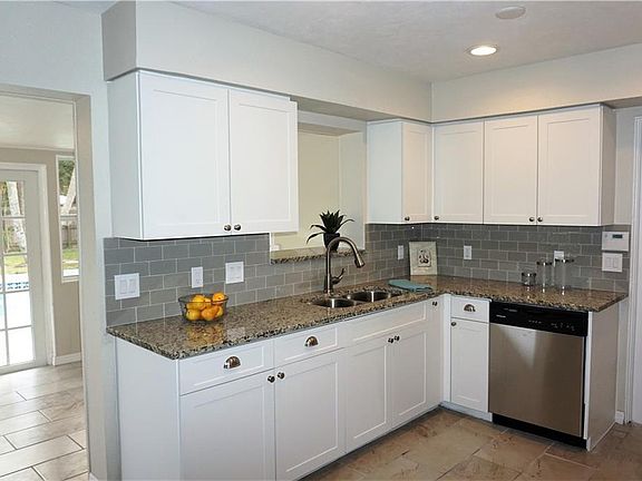 Remodeled CBS home w/POOL! Your guests will adore the living room's inviting corner BRICK FIREPLACE with built-in ledge and mantle! Wonderful LAYOUT connects the living room to the dining, and the kitchen to the family room, which offers a lovely view of the pool! The kitchen has been modernized with new granite countertops, subway tile backsplash, and NEW stainless steel appliances. Tile flooring accents the common areas. Get some fresh air in the lanai, or take a dip in the recently resurfaced pool! Lots of parking available in addition to the attached garage. Located mere moments away from shopping, golfing, restaurants, entertainment, and beautiful Anna Maria Island! Truly a must see!