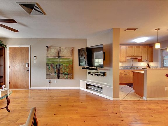 This beautifully remodeled and impeccably maintained home is offered furnished. The kitchen features granite counter tops, stainless steel appliances and wood cabinets with custom lighting throughout. Just off the kitchen the Florida room houses the washer/dryer and makes for convenient indoor outdoor living. Entire A/C system was replaced in 2019 including all the duct work! This quaint community is located on a dead end street and is centrally located- just minutes to the beach or downtown. Situated on the 2nd (top) floor this home offers privacy and a view. You do not want to miss out on this stunning home! Schedule your private showing today.