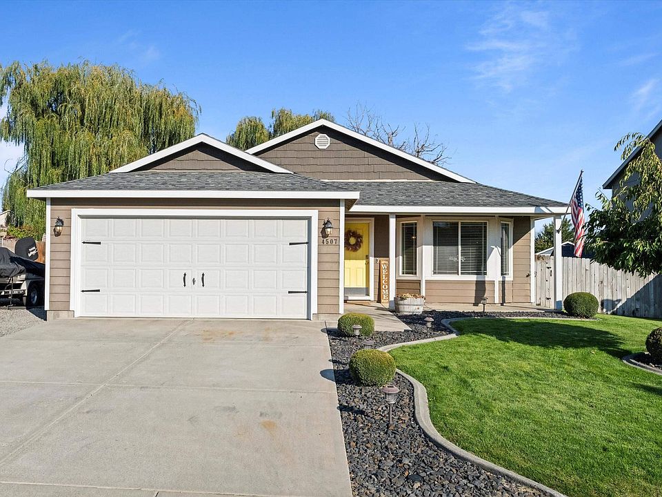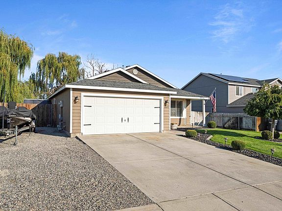 MLS# 287761 Welcome to this beautifully maintained 3 bedroom, 2 bath home with charming updates throughout! The kitchen features newer cabinets, full-height backsplash, stainless steel appliances, and easy-care laminate countertops, while both bathrooms have been tastefully updated with farmhouse features. Additional peace of mind comes with new AC (2020), new furnace and hot water heater (2021). Step outside to enjoy the welcoming front porch, gorgeous landscaping, enclosed fencing, and a spacious backyard complete with a pergola off the back patio...perfect for relaxing or entertaining. A handy storage shed and timed UGS add to the convenience. The property also includes a 2-car garage plus open RV parking, making it ideal for all your needs. Located in a great West Pasco neighborhood, this home is the perfect blend of comfort and value.