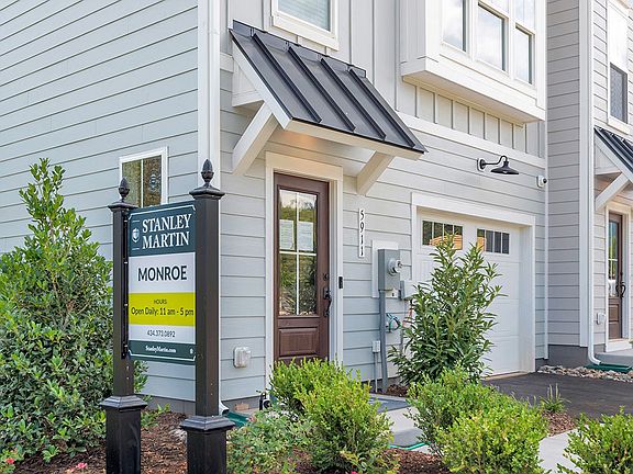 The Monroe townhome comes standard with a 1-car garage, storage, and lower-level walk-out flex space. The bright and cheerful open-concept main level comes equipped with a powder room, a large living room, a kitchen with a granite island, a pantry, new GE appliances, large windows, and plenty of cabinet and counter space. The bedroom level offers convenient laundry, two secondary bedrooms with a hall bath, and a primary suite with double closets, double vanities, and an attached bath. You can add an additional bed/bath on the lower level or a fourth floor with a loft and outdoor terrace to soak in the fantastic mountain views. Neighborhood amenities include a clubhouse with a large patio, fire pits and grill stations, two tot lots, a half-court basketball court, and a neighborhood storage shed. You can also be within walking distance of Downtown Crozet! Photos shown are from a similar home, with options pictured. For a limited time, Structural Options and Design Collection may be chosen by homebuyer. The current price reflects base price and lot premiums - the final price will increase when additional Structural Options and Design Collection are added. This home has an estimated completion date in the fall.