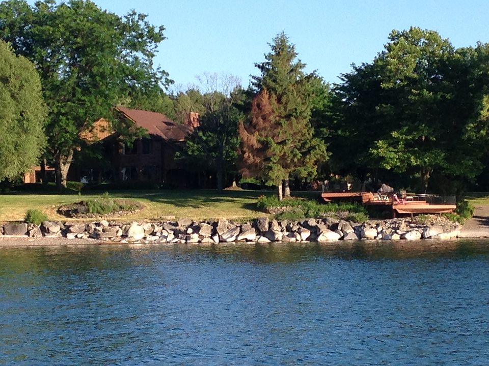 VR Pricing. Seller will consider offers between $1,000,000 and $1,285,000! Check out our Virtual 3D Walk Through Tour Available 24/7! SPECTACULAR, WATERFRONT Estate on over 7 exquisite acres with 400 ft. of waterfront , Private/park like setting, with professional landscaping, surrounds this spacious home featuring updated eat-in kit w/granite counters, ceramic tile fl, center island, walk in pantry and large eating area. LR with cathedral ceiling and wood burning fireplace and formal DR, both with lakefront views, FR with fireplace and custom built bookshelves, All Season rm with grill and wet bar leading to inground/ganite/heated pool with hot tub spa, 1st flr laundry with custom cabinet storage. Huge bedrooms, 1st fl office/5th br, Master bedroom suite with free standing soaking tub, separate shower, twin sinks, heated floor, and walk-in closet. Entertech Geothermal Heating and cooling System (2012), Tennis court, oversized pond, boat launch and attached/3 bay garage holds 5 cars! Multi-tiered Azek deck with lighting and electric boosts breath taking views of Lake Ontario and the Canadian shoreline! BONUS, possible third floor with existing flooring and lake side window!