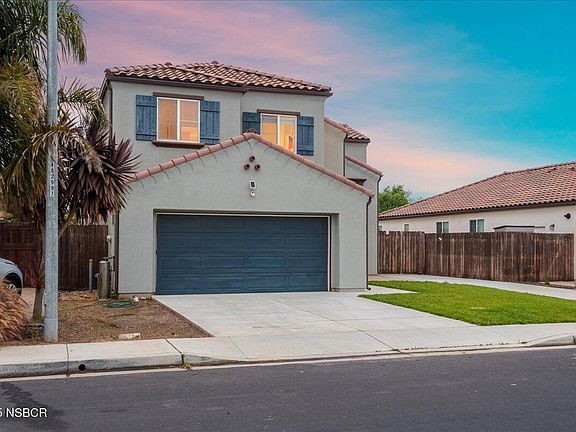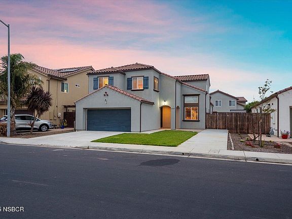 Nestled in the charming coastal enclave of Guadalupe, this modern two-story Pasadera Plan 5 home, built in 2017, features 5 bedrooms and 3 full bathrooms, including a downstairs bedroom and full bath ideal for multigenerational living or flexible use.The open floor plan centers around a well-appointed kitchen with granite countertops. Laminate flooring flows throughout the downstairs, while carpet covers the upstairs bedrooms, complemented by cathedral ceilings, ceiling fans, and dual-pane windows for comfort and efficiency.Additional highlights include solar, a tandem 3-car garage with tankless water heater, forced-air gas heating, a durable tile roof, and a stucco exterior. The fenced yard includes sprinklers, and the large front yard with extended concrete pad provides ample parking--perfect for a boat or RV.