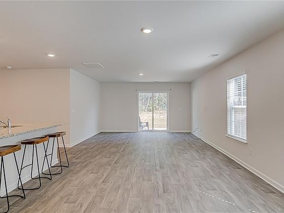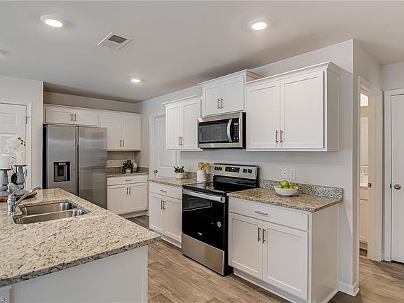 Welcome home to this Move-in Ready, 5 bedrooms, 3 full bathroom home, providing exceptional space and versatility. An inviting entryway leads to the open-concept great room, dining area and kitchen - featuring a large island, granite countertops, and durable vinyl flooring throughout the main level. There is a first-floor bedroom and full bath - a convenient option for guests or multigenerational living. Upstairs you will find a large primary suite with walk-in closet and en-suite bath. There is also a versatile loft area and three additional bedrooms. Both full baths on the upper level include double vanities with sleek quartz countertops. Relax on the back patio and enjoy the scenic backyard. Convenient to shopping, restaurants and more!