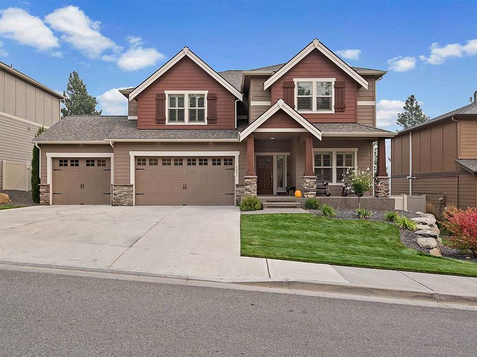 GORGEOUS CRAFTSMAN IN ELK RIDGE HEIGHTS COMMUNITY! Custom 2 story home with open floor concept overlooking views of Spokane Valley and the Selkirk mountains. This home is one of the fewer lots in this community with a large level backyard and private views. Home comes with a large primary suite with granite counters, double sink vanity, garden tub and a tiled walk-in shower. Basement is finished with a custom wet bar and is wired for a projector and surround sound for your enjoyment. The garage can hold upto 4 cars with one of the bays being deeper than the rest. This extra garage space can be used for a small wood shop, gym, or boat storage. High end finishes include alder wood doors/trim, granite counters, hardwood floors, custom built-ins, shiplap, stone gas fireplace, custom plantation shutters, and so much more! Check out the virtual tour for the 3D tour! Don't miss out on the opportunity to own this beautiful home, you will not be disappointed!
