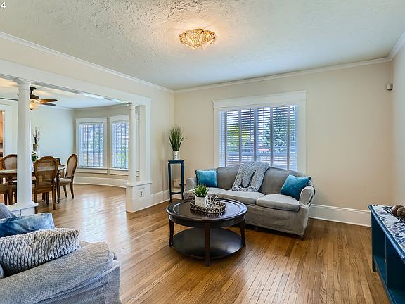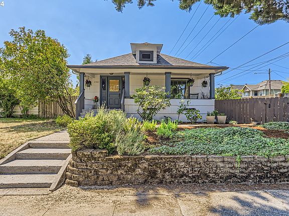 Charming old Portland Bungalow on corner lot in Foster Powell neighborhood. Close to the Mercado and other delicious restaurants. You will fall in love the large covered front deck for your morning or evening relaxation. Hardwood, original columns and windows galore in living and dining rooms. New LVP flooring in bedrooms (June 2024). Kitchen is large for this style home and has exterior entrance to the darling enclosed porch and backyard. This 1073 square foot home lives larger. 2 BR with large jack and jill bathroom. 1/2 bath off dining room for guests. Exterior paint, interior paint and roof all new in June 2024. Room for your toys or RV behind gate off driveway and detached garage New exterior 30 AMP outlet. *600 SF unfinished basement is included in square footage. Schedule your showing today. [Home Energy Score = 8. HES Report at https://rpt.greenbuildingregistry.com/hes/OR10227679]