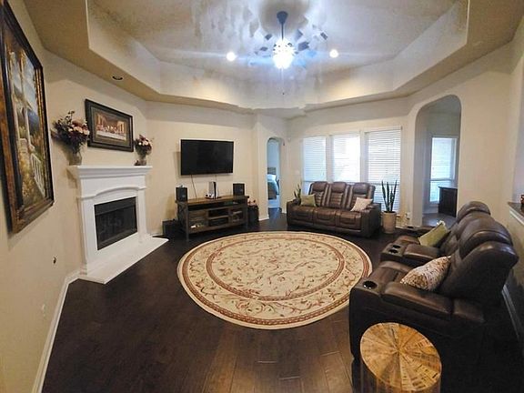 Welcome home to the highly sought after gated community of The Sanctuary. This meticulously maintained home has 4 generous bedrooms & 3 full baths. Walk into luxury and be greeted with 12' tray ceilings, featuring a formal dining room to the right and an executive office suite with dbl doors to the left. Down the hall you will find two bedrooms, a dual vanity bathroom and a pocket office. You will also be greeted by a Chef kitchen with granite countertops, a 5 burner gas stove, dbl ovens, large pantry and a butlers station. The laundry room has been recently upgraded with custom cabinetry (2023)to add functionality& style. A secluded third bedroom is located off the breakfast nook with a designated bathroom & storage closet. The living room has extra high ceilings, surround sound prewire, and a luxurious gas fireplace. Step into the large primary bedroom featuring dbl doors! This gorgeous home has so much more to offer & PRICED TO SELL! Please verify all room dimensions!