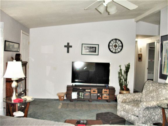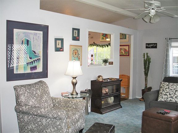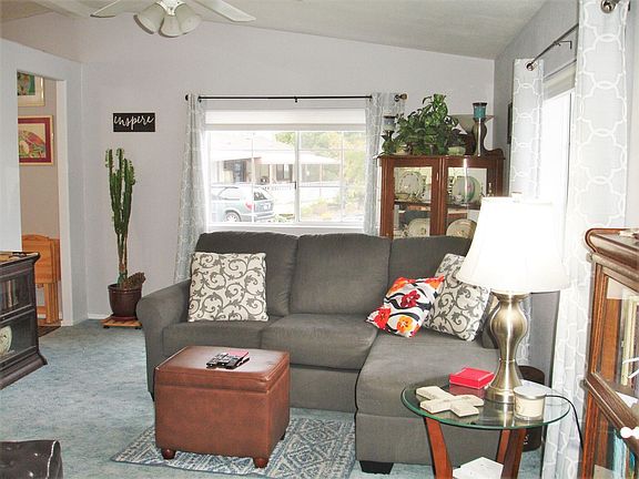 ''THE REDWOODS - a 5 STAR SENIOR PARK'' Move in ready home located on a peaceful dead end cul-de-sac next door to an open greenbelt. Fenced rear yard for pets and garden. Chair lift. Extra wide carport. Side wood deck. Modern kitchen with skylight and oak cabinets. Living room with vaulted ceilings. 3 spacious bedrooms. Central heat & air. Indoor laundry. Space rent includes water, sewer, & trash.Financiable.