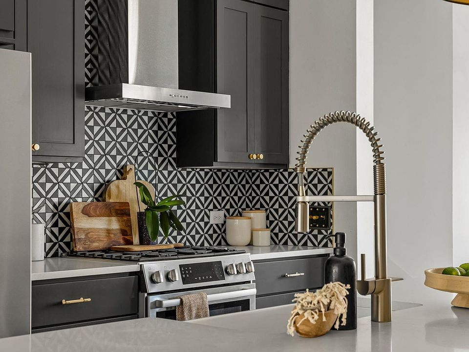 This meticulously maintained Juniper B residence in The Grove pairs elevated design with everyday livability, offering a rare front lawn, a flexible three-level layout, and over $40,000 in curated designer upgrades by Ashley Walker Designs. The home spans 2,218 square feet with 4 bedrooms and 4 baths, including a guest suite with full bath on the main level—ideal for visitors, multigenerational living, or a private office. The second floor lives large with an open kitchen, dining, and living space finished with Ann Sacks marble mosaic backsplash, Bosch gas range, dishwasher, and refrigerator, Sharp microwave, and Schaub & Company brass hardware. Thoughtful details continue with Buster & Punch electrical switches, Visual Comfort lighting, and Philip Jeffries and Thibaut wallpapers, creating a layered and cohesive interior. The primary suite occupies the third level and features a spacious walk-in closet and a spa-inspired bath with a walk-in shower. Two additional upstairs bedrooms, a shared bath, and a conveniently located laundry room with Electrolux washer and dryer complete the top floor. Hardwood flooring added to the upstairs bedrooms, custom paint selections including Sherwin Williams Iron Ore, and upgraded lighting throughout elevate the home beyond builder standard. Additional highlights include Hunter Douglas window shades, Nest smart thermostats, a two-car garage, and the benefit of this phase of The Grove being fully built out—meaning minimal construction activity and reduced neighborhood noise. Residents enjoy proximity to Signature Park, paseo green spaces with community grills and fire pit, and walkable access to Central Market, Uchiko, Taco Deli, neighborhood retail, fitness studios, and salons. The Grove’s trails, playgrounds, and parks make this an exceptional option for families, professionals, and anyone seeking a lock-and-leave lifestyle with green space and community connection.