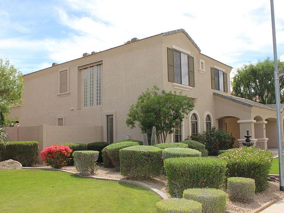 A Gorgeous former model home well suited for entertaining family and friends. Tons of living space w/ formal living rm, family rm,formal dining, open loft and 4 spacious bedrooms! A Beautifully Upgraded kitchen with Granite counters and a center island great for prepping meals! Master bedroom has a elegant entry way, huge walk in closet, jetted bath tub, separate shower dual sink vanity, and a private balcony to take in Beautiful Mountain Views. Ceiling fans, blinds and custom plantation shutters accent throughout the home. Attached 2 car garage with additional detached 3rd car bay with cabinets. A beautifully landscaped backyard which includes a Heated Pool and Spa with outside shower to allow for year round entertaining. Come See it Today!!!