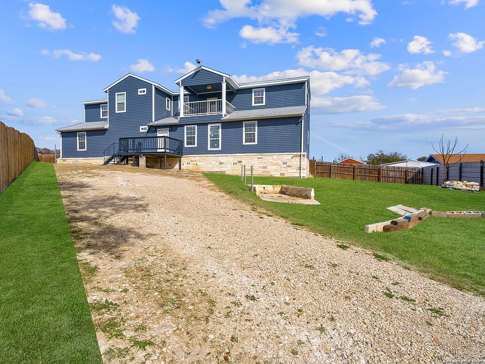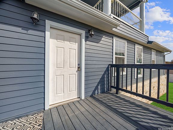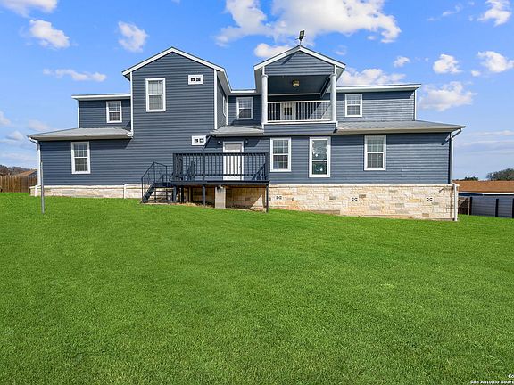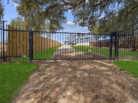 Stunning modern home situated on a sprawling one acre lot. Complete with gated access, updated features, and a backyard ready to be made your own, this home is a must see. The living room flows seamlessly into the breakfast nook and kitchen, perfect for entertaining or hosting gatherings. Featuring ample storage space in both upper and lower cabinets, as well as an oversized island, this kitchen will quickly become the heart of the home. Large windows finish off the formal dining room allowing natural light to stream in and illuminate the entire first floor. A sizable primary and en suite can be found just off the living room, providing privacy and space to unwind. Upstairs, four generously sized bedrooms and two bathrooms, featuring modernized stand-up showers, round out the living space. The upstairs deck offers panoramic views and a peaceful outdoor oasis. Turn this yard into your own personal retreat away from the city. A quick drive from Braunig Lake you will be minutes away from fishing at all times. The short drive to San Antonio and its numerous attractions plus private access to the community pool and park, allows you to have the best of both worlds - a peaceful countryside living but easy access to city life. Schedule a showing today and experience all this home has to offer first hand!