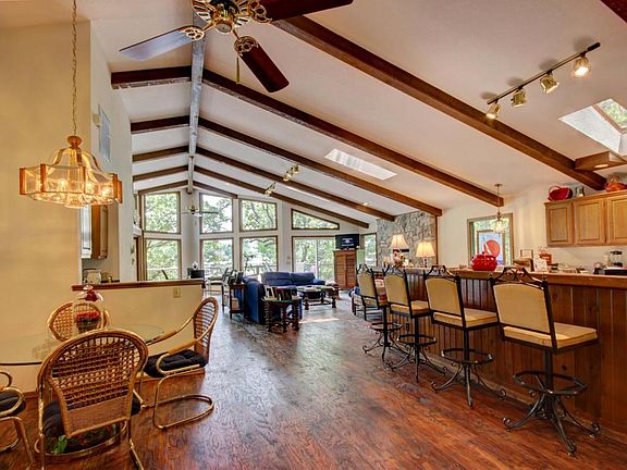 What a find, this home is located in Duck Creek on Thompson Point. Open floor plan with newer flooring on both levels and floor to ceiling lakeside windows surround the living area. 4 beds/ 3 full baths, 2 living areas and 2 fireplaces. Large open kitchen with lots of storage and Wetbar off of living area. Newer lakeside decks with wood/iron railing on both levels. New oversized 2 car garage with work area. 3 slip dock with 2 enclosed slips, and one covered slip. Surrounded by mature trees offering a canopy of shade! Beautiful setting with so many possibilities. It's priced to sell, what are you waiting for?