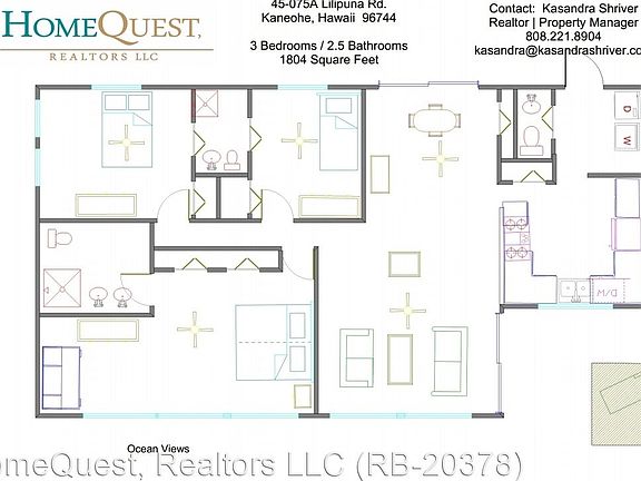 Sweeping Kaneohe Bay Ocean Views - 3BR/2.5BA - Pet Friendly! - Don't miss your chance to spend each day gazing at amazing Kaneohe Bay ocean views! This charming, single level three bedroom, two and one-half bathroom single family home provides amazing ocean views from almost every room. Kitchen features features all the essential appliances and plenty of cabinet and pantry space. Extensive covered and un-covered lanai area provides plenty of entertainment space. Laminate and vinyl flooring throughout the living spaces and bedrooms. Neutral colors throughout. Expansive master bedroom captures the view, and features renovated master bath. Jack-n-Jill bathroom shared by the two smaller bedrooms. Washer/dryer is included. $3600 per month, $3600 security deposit. Pets welcome! Pet deposit will be required. No smoking. One year rental agreement. Tenant responsible for all utilities (electricity, water/sewer, internet/cable). Long and very steep driveway -- do not drive up to house without agent. Tenant required to maintain renter's insurance policy. Landlord provides monthly landscaping. Available July 1, 2020. (RLNE3302885)