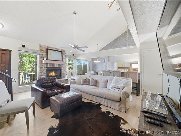 Spinnaker Point lake view condo with 3 bedrooms, 2 bath and two large decks. Granite in kitchen, and bathrooms, and a beautiful refurbished stone fireplace. Laundry facilities in the condo, and a beautiful wet bar below the staircase! A very nice view, and good proximity to the docks. An hour and ten minutes from Tulsa, and ten minutes from Reasor's. A phenomenal view of the 4th Fireworks.