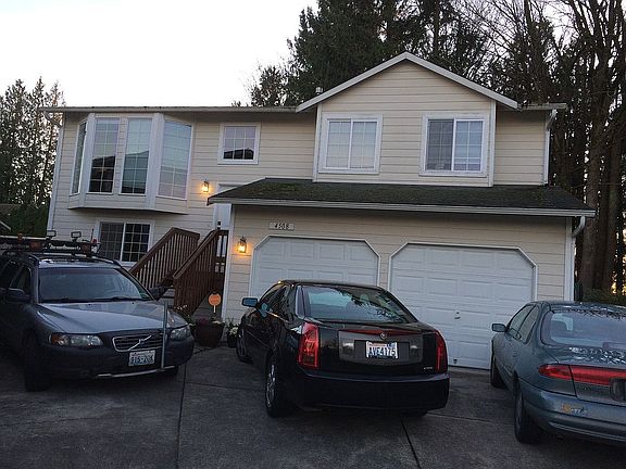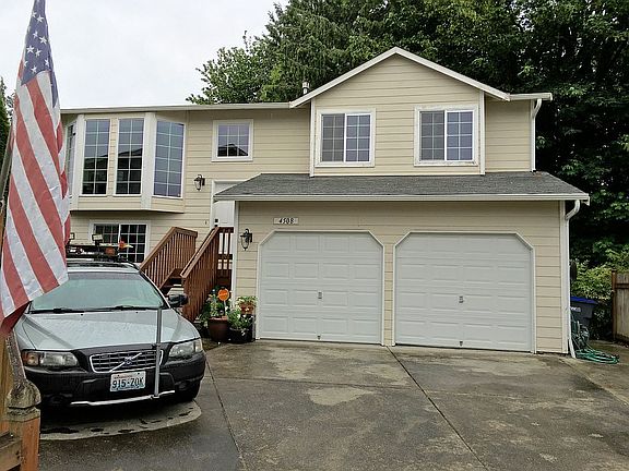 This picturesque lot is set back from the cul-de-sac drive. Features begin with a long, beautifully fenced driveway and an open backyard, with an unobstructed access to a lovely, heavily treed, natural greenbelt. Yard is in a naturalized style, due to a mostly shaded disposition, yet it is still a wonderful palette to work with. It has an artfully river-rocked ground cover, with rustic, landscaped, planting beds. It blends in perfectly to the west facing greenbelt, which features the most excellent sunsets, year round! Very low maintenance with zero grass to mow! New upper and lower decks for entertainment, relaxation and enjoyment. Home has a recently finished ground floor level with a refreshed and updated upstairs/main floor. Kitchen features new Frigidaire stainless fridge, range and overheard microwave/exhaust hood unit. Kitchen also features a sturdy, well maintained, stainless, Bosch dishwasher along with updated, newly designed cupboards and cabinets with newly installed granite countertops. Sheetrocked and painted downstairs features an enclosed washroom/half-bath. Plumbing is in place for a shower or bath, and the green sheetrock has been pre-installed. Newer modern Whirlpool front-load, full-size stackable washer and dryer set in white, can be included in home purchase. (Washer and dryer always kept under Sears maintenance contract). Home exterior is recently repainted and updated, including newly added eve covers for a finished look and varmint security. Repaired and refinished front porch and upstairs rear deck. Debris free gutters, moss free roof and walkways are all power washed and clean. This is a very nice and sturdy home. Spacious and cozy, it has tons of potential and charm, with beautiful territorial views. The south facing skyline is often filled with aerobatic planes, practicing routines for Fly-in competitions. An amazing and mesmerizing sight to behold! There is room for added office space,a mother-in-law, at least two additional bedrooms, family rec room, theatre or media room, den, etc. This home also features a finished two car garage with recently serviced garage doors. Our neighborhood is experiencing a continuous rise in home values, yet the prices are still less than the highest Zillow Zestimates of several years ago...before the bubble burst. Real estate is still one of the best life investments that a person can make and this home makes a perfect case for it.