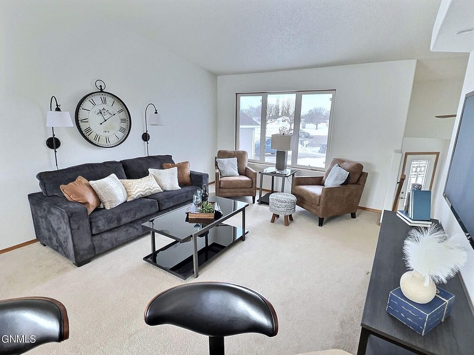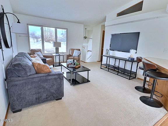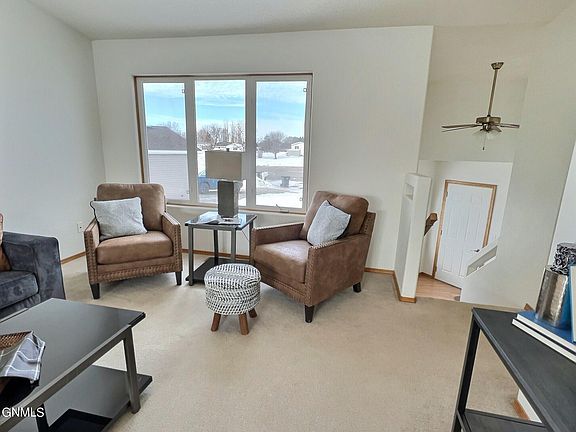Located in a cul-de-sac in NW Mandan, you are close to schools, trails and shopping. This home is a split level with vaulted ceilings in the main area of the home giving it an open flow with additional architectural features above the kitchen island. The primary bedroom is spacious and offers walk in closet and has a walk thru to the main bath. There is a second bedroom on the main level. In the lower level you will enjoy the daylight windows that open into the family room. There are 2 additional bedrooms with one offering a walk in closet and the 3/4 bath is newly finished. The laundry room is wide open with plenty of room for storage. There is an attached double garage. The backyard is fully fenced. Ready to call this one home? Call an agent today for a showing.