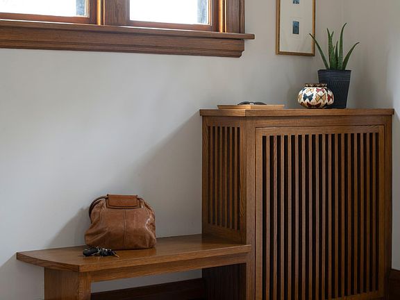 kitchen and two of the 3 bathrooms, refinished hardwood floors, Scandinavian made wood burning fireplace insert, custom cabinetry, crown moulding, mud room, handy powder bath on main, stunning upper level bath with walk-in glass shower with multiple shower heads, and a newly completed lower level family room with adjoining new 3/4 bath and laundry. For the artist, hobbyist or woodworker there is a sweet backyard