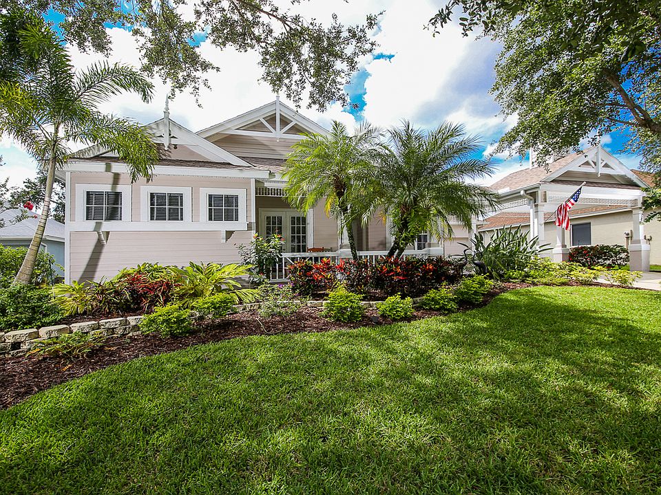 Beautiful updated waterfront pool home with boat dock. Custom Key West style with 2 Master Suites, 3rd guest bedroom or Den, 2.5 baths, Great Room, Dining Room and Office. Open Plan, 10 foot ceilings with Crown moldings, new 18” diagonal tile, solid wood floors in bedrooms, gas fireplace, and built-ins. Totally new Kitchen with white painted wood cabinets, gorgeous stone counters, new SS appliances, and breakfast bar is open to Great Room and outdoor spaces. Sound speakers throughout with volume controls. New lighting, ceiling fans, fireplace stone, and freshly painted inside and out. Enjoy Florida living and dining in the covered lanai and love the solar heated, salt water 40 ft lap pool and Spa. New tropical landscaping, oak trees, and large yard are picturesque. Extended garage with 10 ft ceiling, built-in storage, side entry, and attic storage. New roof, new solar heater, new pool equipment in 2017, newer gas water heater, 17 Seer AC system, hurricane screens, and security system provide peace of mind. 75 ft seawall, 36 ft dock with power and water to enjoy boating, fishing, and visiting local venues by boat. Gorgeous boating community of The Inlets is SW Florida’s best with direct access to Manatee River, & Gulf. Walking trails, tennis, fishing pier, kayak launch, & playground. Easy access, near I-75 & SR64, close to airports, great schools, restaurants, shopping, beaches, Sarasota, St. Pete & Tampa. No CDD, low HOA & low flood insurance.