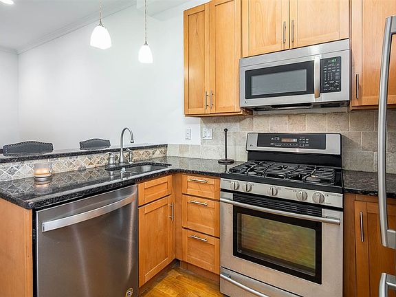 Gorgeous 2 Bed (convertible 3 Bed) / 1 Bath duplex in Union City! Updated 6-unit building located minutes outside of Manhattan. Enjoy 10' ceilings, HW floors, stainless steel & granite kitchen w/ 42" custom cabinets & tumbled marble backsplash. W/D in unit, very large bathroom, and spacious terrace/backyard accessible from both floors. Finished lower level can be used as living space or an additional bedroom. Large private storage area and low maintenance fee. Maintenance fee includes sewage and upkeep of backyard. Rental parking is available nearby. Unit is 1 block to NYC transportation - own this stunning condo for less than you would pay in rent! Floor Plan in photos.