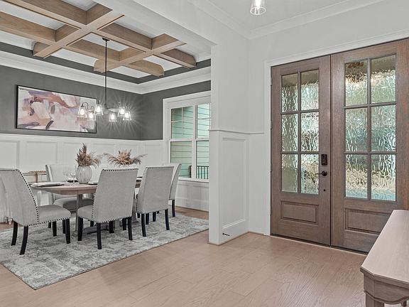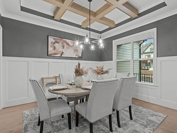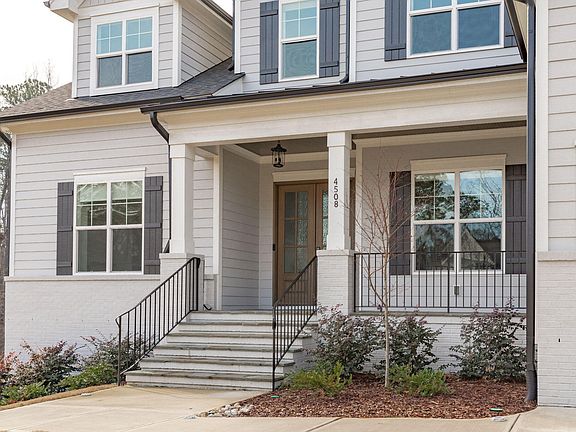 This stunning custom home, built by ICG, is located in the desirable Chandler Cove neighborhood and is less than two years old, offering the feel of brand-new construction. Situated on a private cul-de-sac lot adjacent to a pond along with a wooded backdrop, it provides exceptional privacy. The first floor features a luxurious primary suite and a guest suite or office, both offering ample comfort and space. Custom Lutron remote-controlled shades, including sun-blocking shades, provide the perfect balance of natural light and privacy throughout the main floor. Beautiful wide-plank hardwood floors span the main living areas, enhancing the home's elegant feel. The gourmet kitchen is a chef's dream, complete with 'Bianco Aspen' quartz countertops, custom white cabinetry with soft-close features, and an oversized island with a white apron farm sink. High-end KitchenAid appliances include a 6-burner gas cooktop and oven, complemented by a spacious pantry to meet all your culinary needs. The expansive living room is anchored by a striking stone-to-ceiling gas log fireplace with built-ins, shelving, and a floating mantle, creating a welcoming focal point. A four-panel slider opens to a screened-in porch, featuring a brick-surround gas fireplace and direct access to the patio for seamless indoor-outdoor living. The second floor offers two generously sized bedrooms, two full bathrooms, a great room, and an abundance of unfinished storage, providing endless potential.